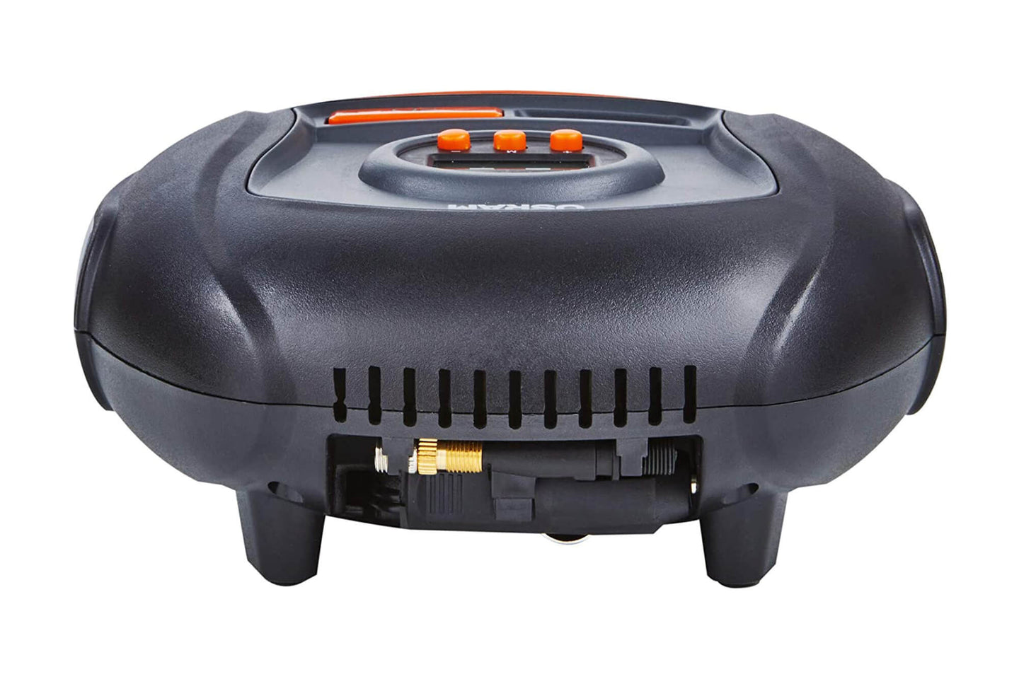 Compresor digital Osram model 450 cu buton de pornire mare si comod. Compresorul are un compartiment pentru depozitarea capacelelor de valve. Multimetrul, aflat deasupra butonului de pornire, poate monitoriza valorile presiunii in kPA, bar si PSI. Alimentarea este de 12V, prin conector pentru bricheta auto. In kit sunt incluse trei adaptoare pentru umflat anvelope: biciclete, motociclete, mingi si altele.