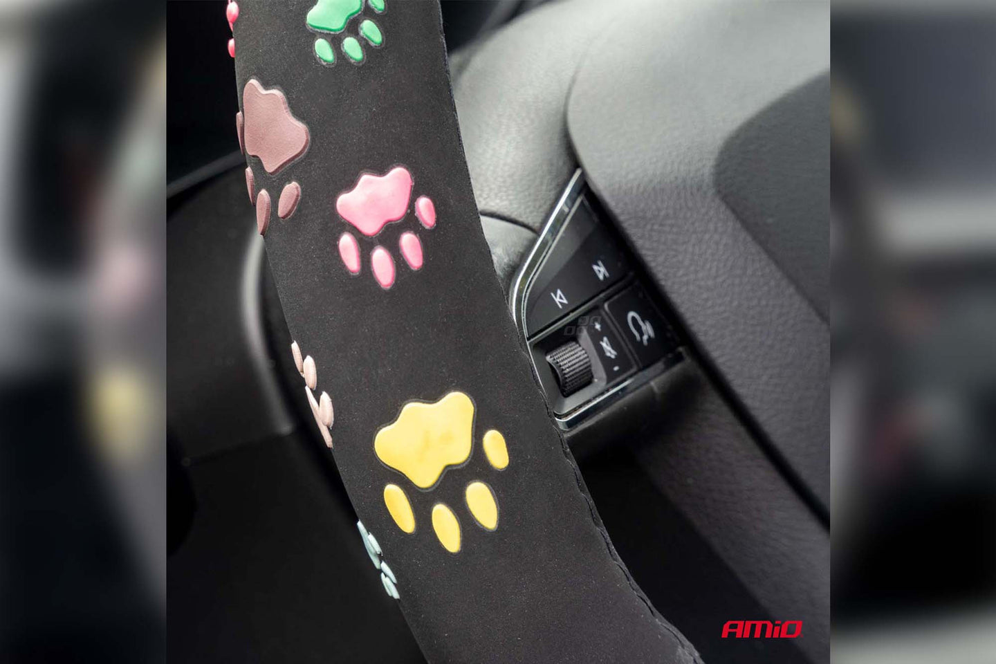 Husa volan Amio 37-39cm, neagra cu labute colorate