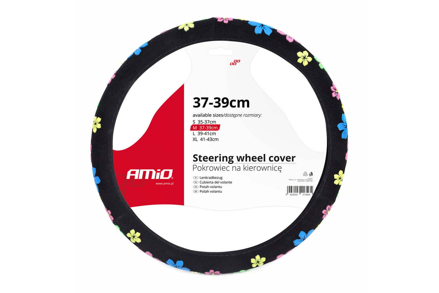 Husa volan Amio 37-39cm, negru cu flori colorate