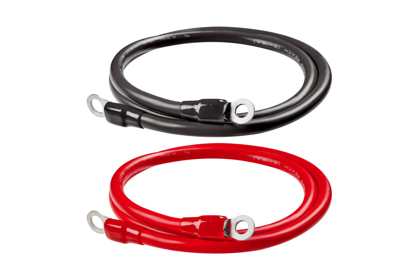 Conecteaza cablul rosu (+) la borna rosie (+) a invertorului si la borna rosie (+) a bateriei.