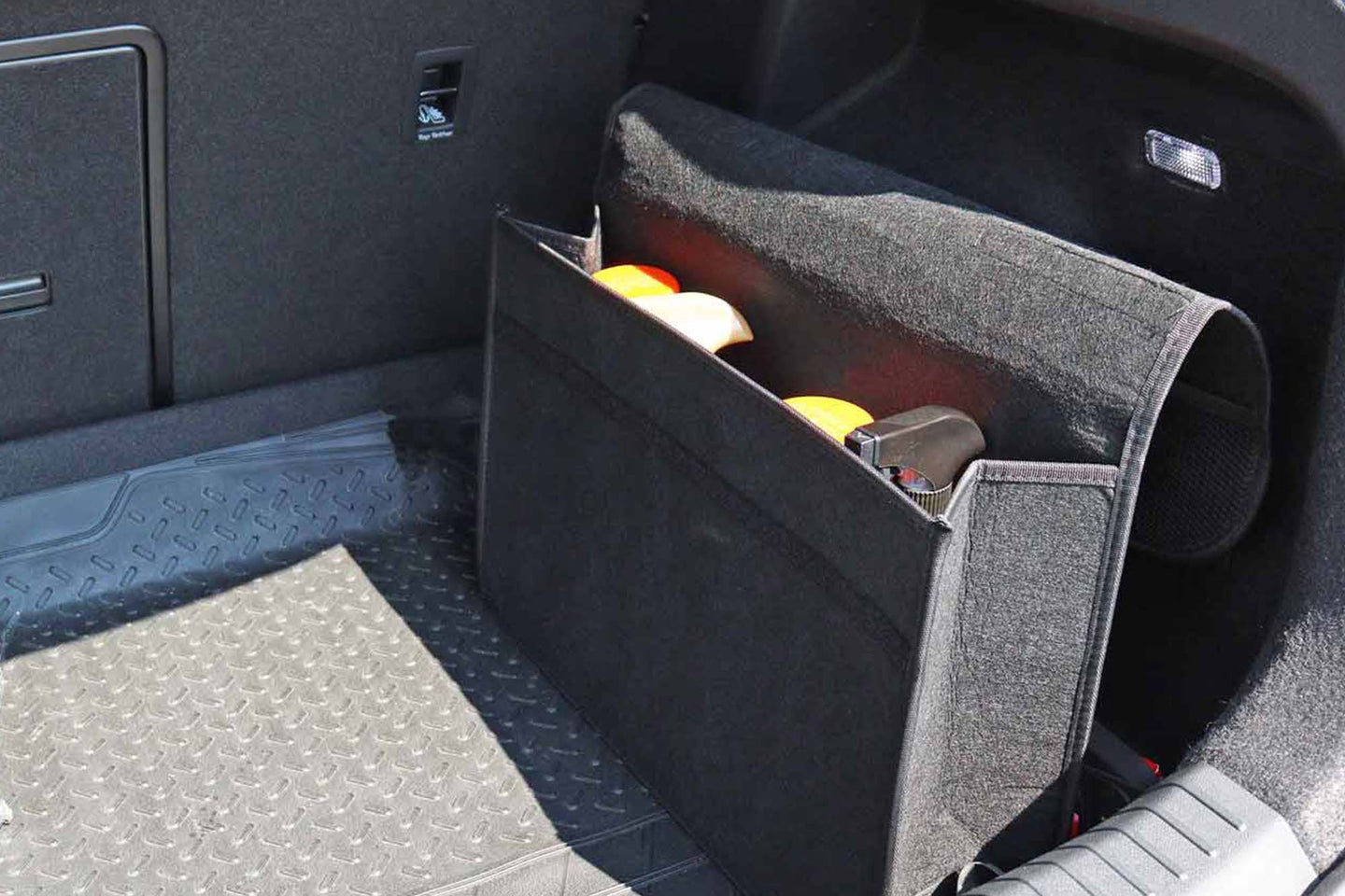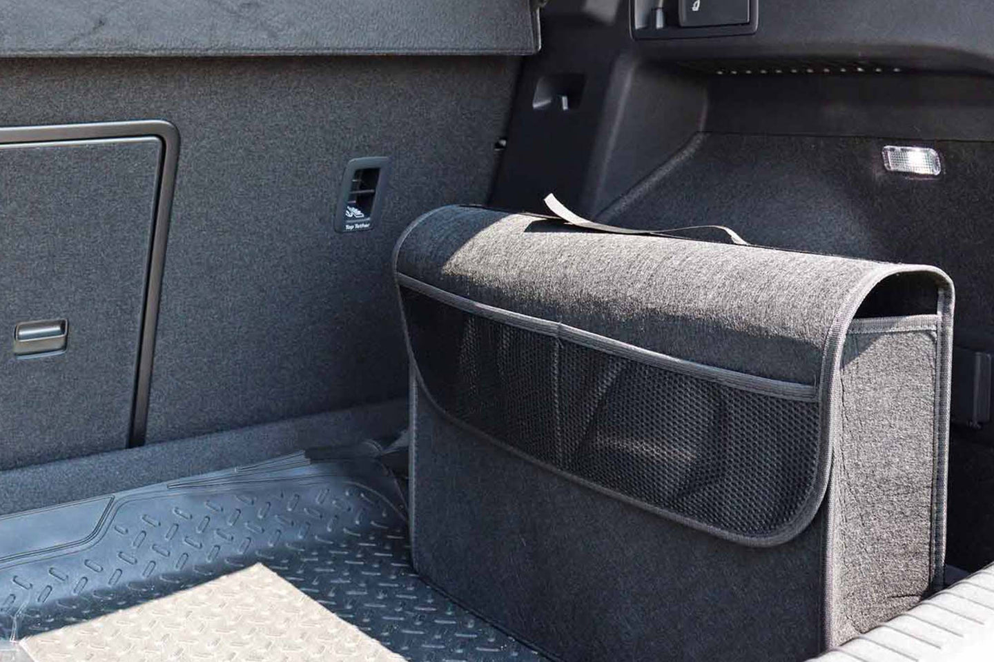 Instalare usoara: se fixeaza simplu in portbagaj cu ajutorul benzii Velcro sau altor prinderi