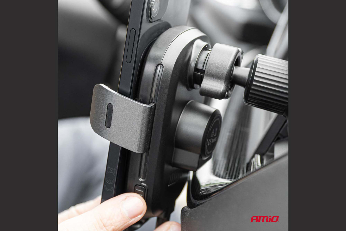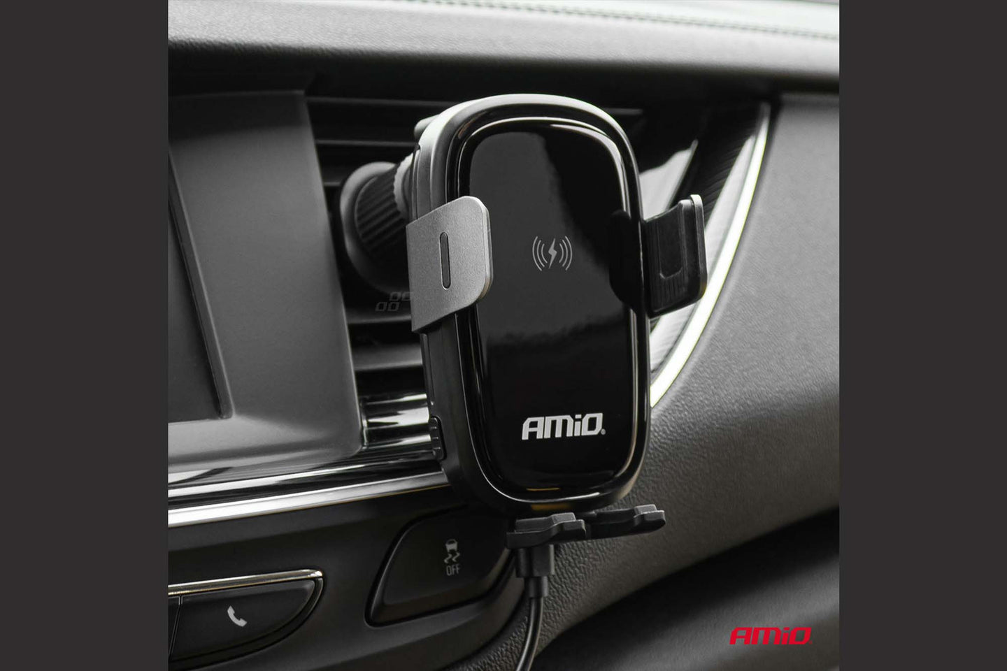 Descopera combinatia perfecta intre stil si functionalitate cu suportul AMiO cu incarcator inductiv 15W. Creat pentru confort si versatilitate, acest suport asigura incarcare fara efort si tine telefonul fixat in siguranta in masina ta.
