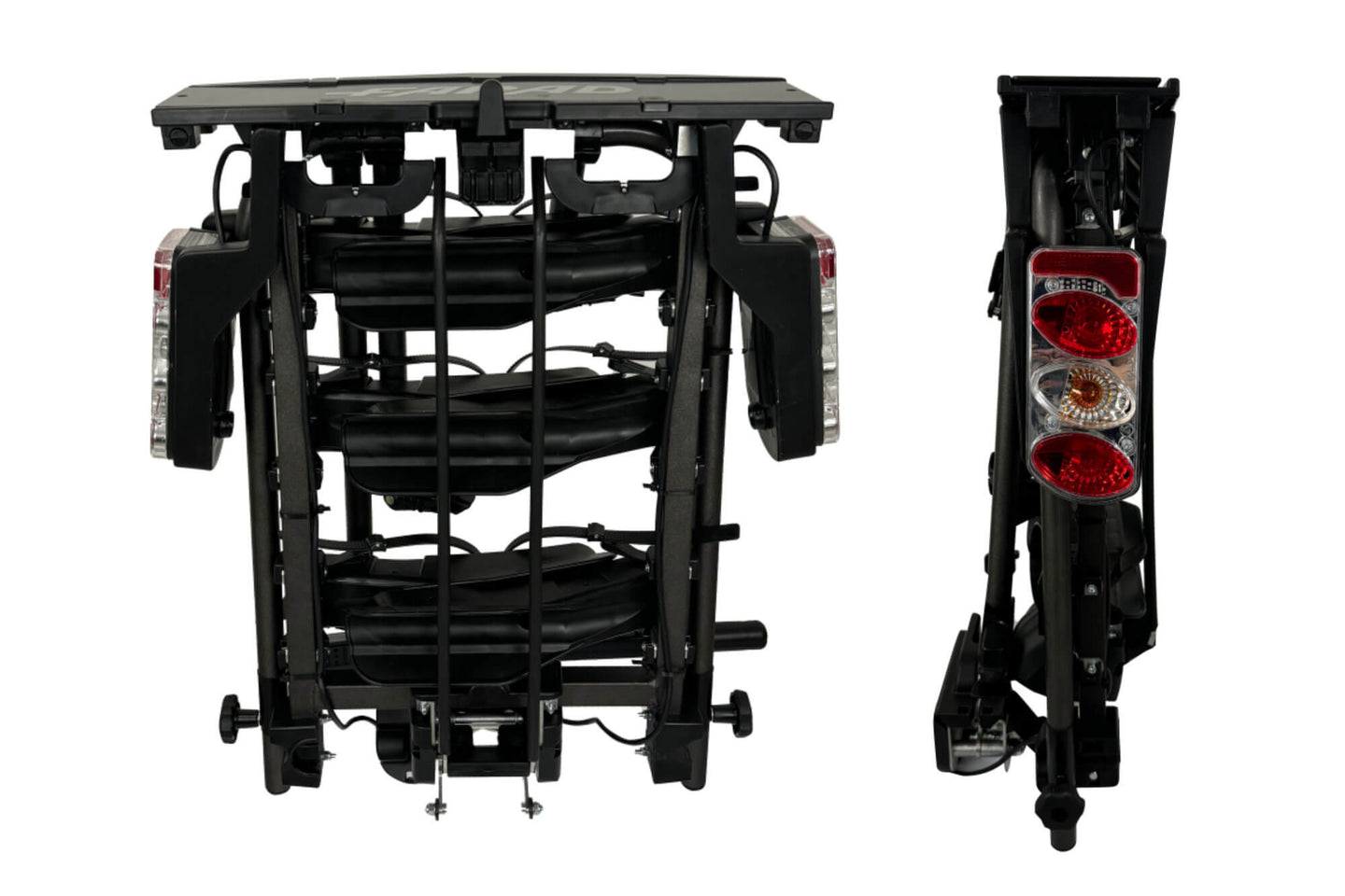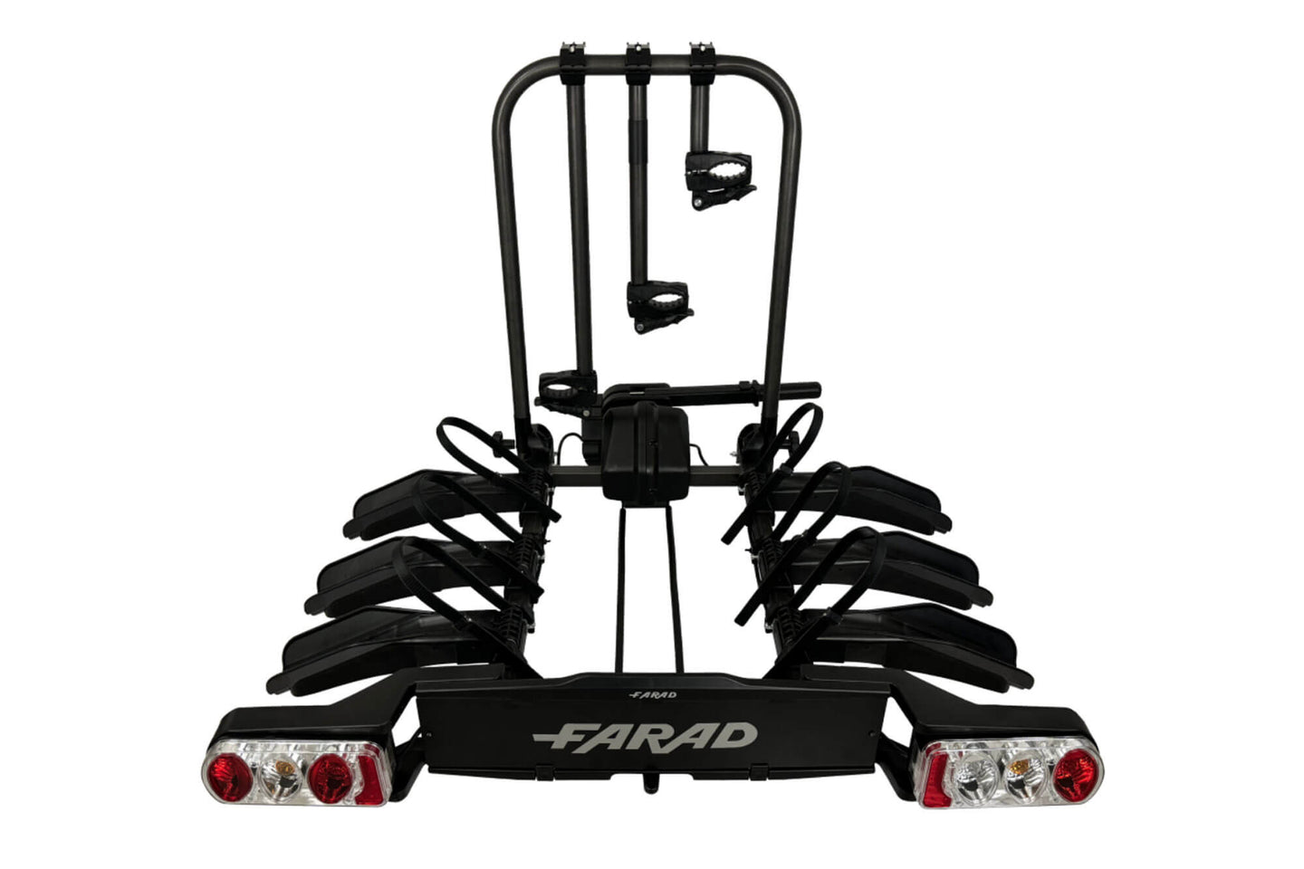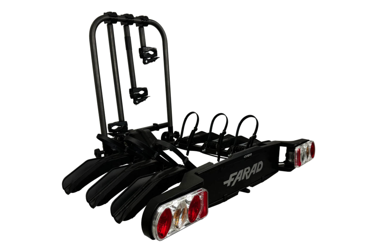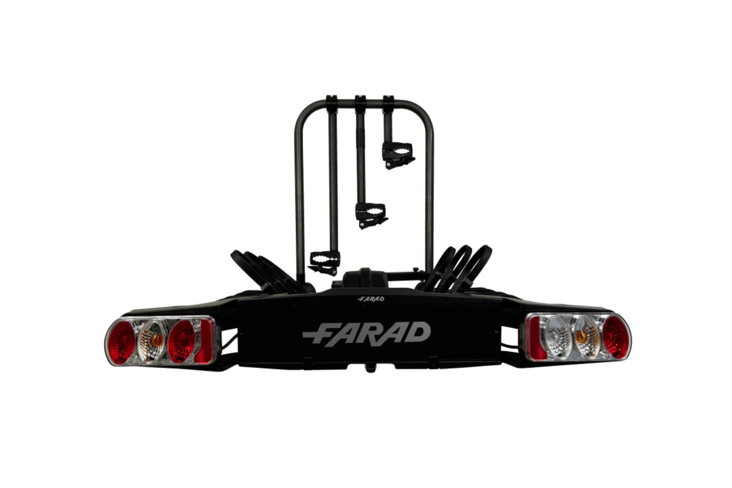 Suport bicicleta Farad pentru bara remorcare, model Susa, pentru 3 biciclete pana la 60 kg, cu spatiu pentru numar de inmatriculare