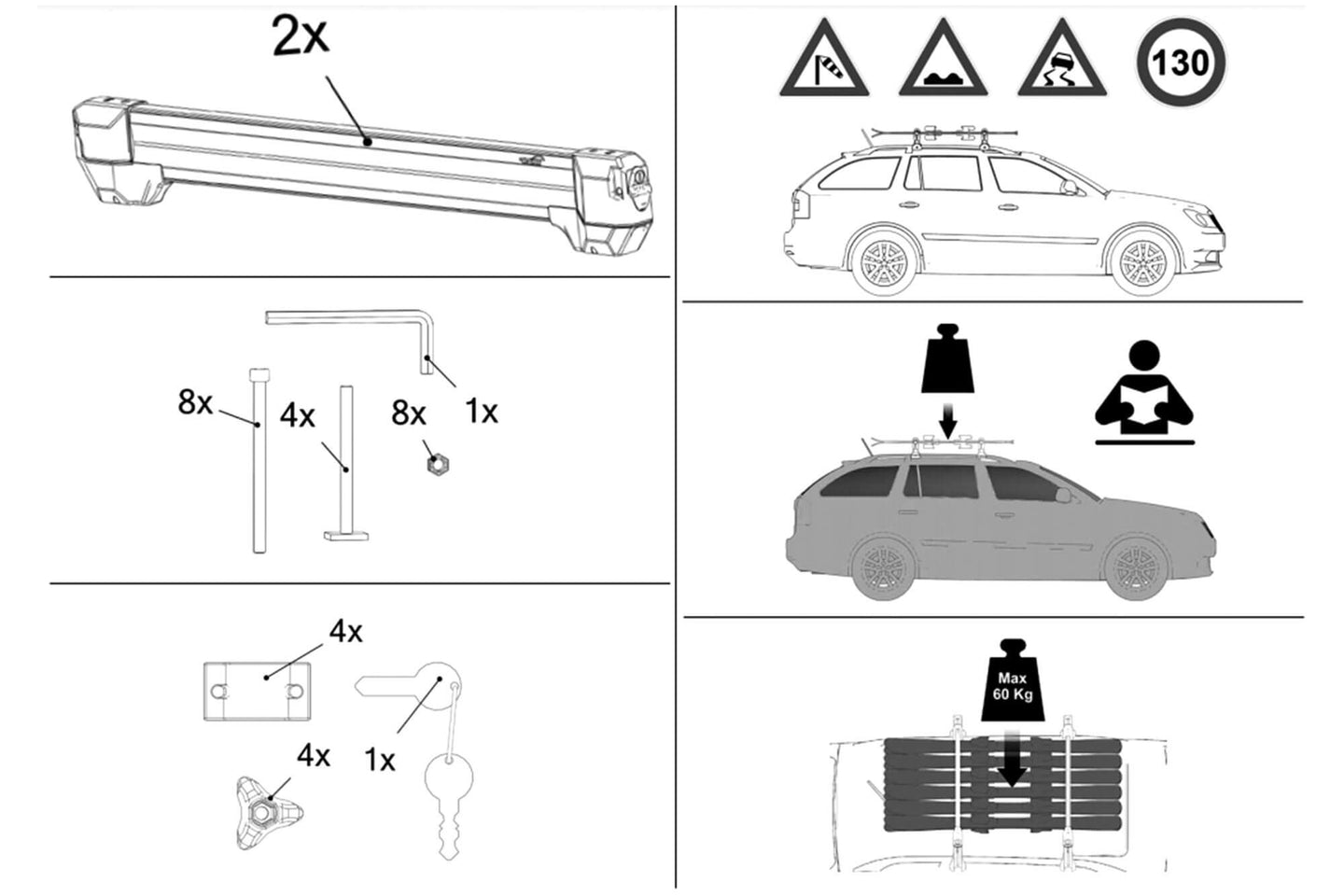 Hakr Alu 4 este compatibil cu majoritatea barelor transversale si dispune de mecanisme usor reglabile pentru o instalare rapida. Exteriorul elegant, de culoare neagra, adauga stil autoturismului tau, iar designul compact si usor faciliteaza depozitarea atunci cand nu este folosit.