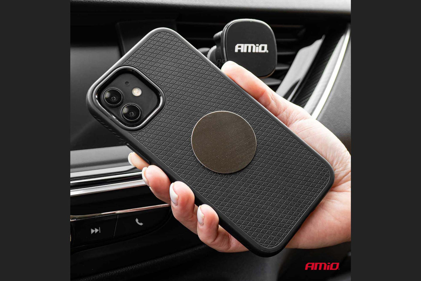 Suport telefon Amio cu magnet - montare pe grilele de ventilatie